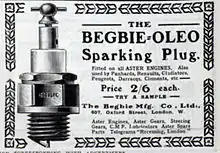 Advert for Begbie Oleo sparking plugs from May 1904, fitted on all Aster engines