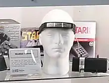 The Atari Mindlink is an unreleased video game controller for the Atari 2600, originally intended for release in 1984.[1] The Mindlink was unique in that its headband form factor controls the game by reading the myoneural signal voltage from the player's forehead.[2] The player's forehead movements are read by infrared sensors and transferred as movement in the game.[3]