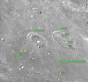 - ↑ The geologic history of the Moon. USGS Professional Paper 1348. By Don E. Wilhelms, John F. McCauley, and Newell J. Trask. U.S. Government Printing Office, Washington: 1987. Table 11.2.