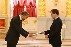 After the fall of the Taliban government Karzai was appointed Afghan Ambassador to the Czech Republic. He later became aid to the Afghan Foreign Minister and Ambassador to Saudi Arabia.[4][5] From 2010 until 2013 he served as Afghans Ambassador to Russia.