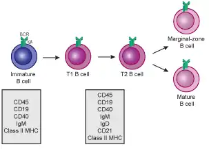 12. 1 2 3 Chung JB, Silverman M, Monroe JG (June 2003). "Transitional B cells: step by step towards immune competence". Trends in Immunology. 24 (6): 343–349. doi:10.1016/S1471-4906(03)00119-4. PMID 12810111.