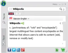 - ↑ Free Dictionary Lookup by Babylon. Babylon-software.com (2 August 2001). Retrieved on 9 November 2010.