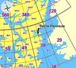 Bache Peninsula is a geological formation in Canada, on Ellesmere Island in Nunavut. The peninsula is considered a cape', meaning that it is a headland that dramatically affects the ocean currents. It is primarily known for being the site of the world's northernmost permanent settlement from 1926 to 1933, a Royal Canadian Mounted Police post.[1]
