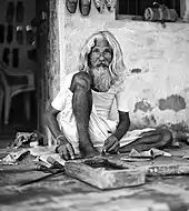 Baddha Konasana (Sanskrit: बद्धकोणासन; IAST: baddhakoṇāsana), Bound Angle Pose,[1] Butterfly Pose,[2] or Cobbler's Pose (after the typical sitting position of Indian cobblers when they work),[3] and historically called Bhadrasana,[4] Throne Pose,[4] is a seated asana in hatha yoga and modern yoga as exercise. If the knees rest on the floor, it is suitable as a meditation seat.[4]