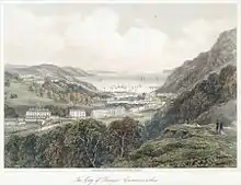 A parliamentary borough was created in 1832 for Bangor, becoming a contributing Caernarfon out borough as its status grew due to further industry such as shipbuilding[4] as well as travel, not just from Telford's road, but through tourism mainly from Liverpool via steamboat.[5] It was also an ancient borough from earlier privileges granted to Bangor in medieval times,[6] but an 1835 government report investigating municipal corporations concluded that this status was defunct and in name only.[7] The borough was reformed in 1883 into a municipal borough.