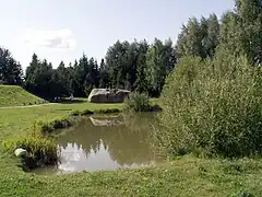 The Barstyčiai stone (Lithuanian: Barstyčių akmuo), also the Puokė stone (Lithuanian: Puokės akmuo) is the largest boulder in Lithuania, declared geological monument in 1968. It was found by the village of Puokė, Barstyčiai eldership, Skuodas district in 1957. Length: 13.4 m, height: 3.6 m, width: 7.5 m, weight: estimated 680 tons. [1] [2]