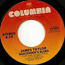 "Bartender's Blues" is a song written by James Taylor and first released on his 1977 album JT. It was also released as the B-side of the lead single from JT, "Handy Man". It has since been covered by George Jones and other artists.