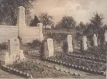 White crosses and Stars of David mark 2,289 graves, 250 for unknown service members, and the names of 1,060 missing men adorn the wall of a memorial chapel. Visitors also stop at the nearby German cemetery where 8,625 men are buried; 4,321 of them—3,847 unknown—rest in a common grave. The German cemetery was established in March 1922, consolidating a number of temporary sites, and includes men killed between the Aisne and the Marne in 1918, along with 70 men who died in 1914 in the First Battle of the Marne.[5][17]