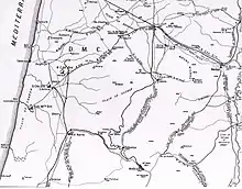 While the brigades of the XXI Corps' 3rd (Lahore), the 7th (Meerut) and the 75th Divisions attacked the Tabsor defences, the 54th (East Anglian) Division and the Détachement Français de Palestine et de Syrie defended and pivoted on the Rafat salient covering the right flank. Further to the right, the XX Corps would begin the Battle of Nablus in the Judean Hills in support of the main attack by the XXI Corps, by advancing to capture the Seventh Army headquarters at Nablus and blocking the main escape route from the Judean Hills to the Jisr ed Damieh.[29][30][31][32][Note 3]