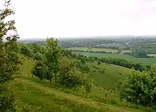 Beacon Hill is near the village of Burghclere and Watership Down, in north Hampshire. The hill's name is derived from the fact that it was one of many Beacon Hills in England and beyond. This hill was once the site of the most famous beacon in Hampshire. It is 261 metres high and has one of England's most well known hill forts on its slopes, visible from the main A34 road which passes close by. From there, outstanding views of the surrounding area and much of Hampshire may be obtained. The site is open to the public and managed by Hampshire County Council. It is an 80.7-hectare (199-acre) biological Site of Special Scientific Interest called Burghclere Beacon[1][2] and a Nature Conservation Review site, Grade I.[3]