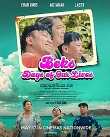 Beks Days of Our Lives (also known as Beks: Days of Our Lives) is a 2023 Philippine independent drama comedy film directed by Chad Kinis in his directorial debut and by the screenplay of Jonison Fontanos and story by Kinis and Norman Boquiren. It stars Lassy Marquez, Mc Muah, and Chad Kinis.[2] The film is about three friends having a vacation and talking about their family issues.