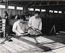 Under Sette's guidance, Shimada worked with many accomplished fisheries scientists and oceanographers while at POFI, including Wilbert McLeod "Wib" Chapman, Roger Revelle, Milner Baily "Benny" Schaefer, and Sette himself, as well as young scientists who would become notable in their fields as their careers progressed, such as Townsend Cromwell, Fred Cleaver, Warren Wooster, Alan Tubbs, William Aron, Gerald Howard, Richard Hennemuth, Howard Yoshida, and Tom Hida.[1] The Fish and Wildlife Service assigned two research ships to support POFI, and Shimada served as a seagoing biologist, in charge of shipboard science watches and research.[1]