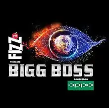 The Bigg Boss "eye" is split, with red on one side and blue on the other; red representing fire and blue representing water.
