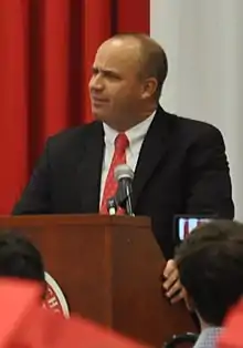 O'Brien delivering a commencement speech at St. Thomas High School in May 2016