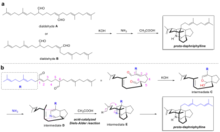 14. Heathcock CH, Piettre S, Ruggeri RB, Ragan JA, Kath JC (1992). "Daphniphyllum alkaloids. 12. A proposed biosynthesis of the pentacyclic skeleton. proto-Daphniphylline". Journal of Organic Chemistry. 57 (9): 2554–66. doi:10.1021/jo00035a009.