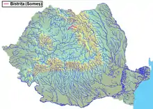The Bistrița (Romanian pronunciation: [ˈbistrit͡sa] ⓘ; Hungarian: Beszterce) is a river in the Romanian region of Transylvania, Bistrița-Năsăud County. It is sometimes referred to as Bistrița ardeleană.[1] Near the city of Bistrița (at the village Sărata) it flows into the Șieu,[2] a tributary of the Someșul Mare.[3][4] Its length is 67 km (42 mi) and its basin size is 650 km2 (250 sq mi).[4]