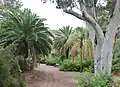 Over 2600 species of arid land plants from around the world grow at the arboretum. Agaves, aloes, boojum trees, cork oaks, jujube trees, legume trees, and, in the eucalyptus grove, one of the largest red gum eucalyptus trees ("Mr. Big") in the United States. Cacti and succulents grow extensively throughout the arboretum.