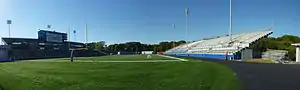 Seating capacity has increased by 6,200 seats since 1980 (5,000 in 1980 and 1,200 in 1998). The original playing surface featured a sand foundation that enabled the field to withstand six inches (152 mm) of rain at one time without altering the footing;[3] however, that surface was replaced with ProGrass synthetic turf during the summer of 2010.
