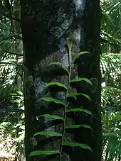 A total of 16 species of fungi, 19 mosses, 4 conifers, 92 ferns, 299 dicots and 54 monocots are recorded as occurring in the National Park.[10] Much of the rainforest in the National Park is complex mesophyll vine forest with pockets of simple and complex notophyll vine forests on poorer soils.[3] Many of the vegetation communities including rainforests, vine thickets and vine forests are considered fire sensitive.[11]