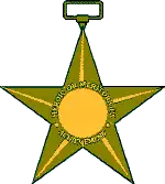 The Bronze Star Medal with the "V" device to denote heroism is the fourth highest military decoration for valor. Although a service member may be cited for heroism in combat and be awarded more than one Bronze Star authorizing the "V" device, only one "V" may be worn on each suspension and service ribbon of the medal.[16][17] The following ribbon devices must be specifically authorized in the award citation in order to be worn on the Bronze Star Medal, the criteria for and wear of the devices vary between the services: