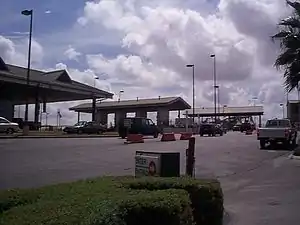 The Brownsville B&M Port of Entry opened in 1909 with the completion of the Brownsville & Matamoros International Bridge. The bridge was built to carry trains, horses, wagons and pedestrians. The original bridge could swing open to allow river traffic to pass; however it was a function that was almost never used due to the shallowness of the Rio Grande.[1] The bridge was substantially renovated in 1953, and a second 4-lane bridge dedicated to northbound traffic was built adjacent to it in 1997. Since 1999, all truck traffic has been diverted to the Veterans and Los Indios crossings.