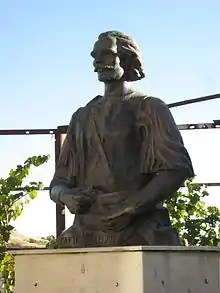 Statue of Tafil Buzi, in the town of Buz, Albania