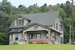 The Camp House is a historic house at 4684 West Arkansas Highway 60 in Aplin, Arkansas. It is a 2+1⁄2-story wood-frame house, with a gabled roof, weatherboard siding, and a stone foundation. Its roof has deep eaves with applied decorative elements, and exposed rafter ends in the eaves. The front is adorned by a gable dormer, polygonal bay, and porch, all with bracketed gable roofs. The house was built about 1917 for James Camp, and is one of the small community's most distinctive examples of Craftsman architecture. It is also likely that the house was built from a kit Mr. Camp purchased from Sears, Roebuck.[2]