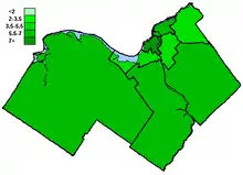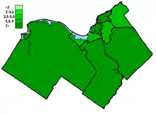 | Green | 23,536 | 5.6 | 26,854 | 6.0 | 36,683 | 8.5 | +0.4 | +2.5 | |