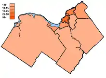 ![]() Map of the region's ridings in 1984. Colours show the result from the 1984 election |