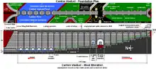 A partial isometric elevation of the Canton Viaduct with the deck removed; there are 21 cavities in the viaduct