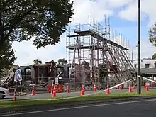 Carlton Hotel suffered damage in the 2010 Canterbury earthquake, but remained open. It was heavily damaged in the subsequent earthquake on 22 February 2011, when part of the façade facing Papanui Road collapsed. Engineers found that the building was prone to failure in another strong aftershock, and it was demolished on 9 April 2011.[5][6] The building's owner has replaced the building with a modern structure,[7] but the new complex has been criticised as "unsympathetic".[8]