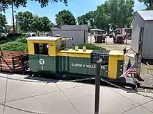 The CCRA runs the railroad with a replica diesel switcher, Engine No. 1. It is painted in a green-and-yellow livery.[4] Two Narragansett-style excursion cars and one gondola car are used for carrying passengers.