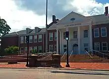 Page, Adolphus Jones, and Rufus Jones established Cary Academy, a private boarding school later known as the Female Institute and Cary Female Academy.[5][20][23] The two-story school was built in 1870 on Page's land at the end of Academy Street with lumber milled on-site by Page.[5][19][20] Other additions to the town included Page's tobacco warehouse, First Methodist Church, First Baptist Church, and the Cary Colored Christian Church (the latter on land donated by Page), along with two free schools for whites and two free schools for blacks.[20]