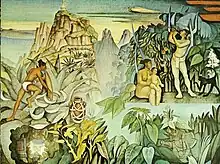 Suárez wanted the hotel to be a gathering place for intellectuals and artists, and commissioned various works of art for the walls and gardens.[11] He hired Mexican and Spanish artists such as José Reyes Meza and Josep Renau to decorate the walls with murals showing Mexican history from the pre-Columbian period to the modern age.[2] The murals would cover an area of 600 square metres (6,500 sq ft).[15] The hotel became the center of cultural activity in Cuernavaca and was visited by artists, writers and political activists.[2]