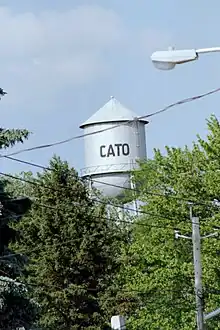 Cato is a village in Cayuga County, New York, United States. The population was 532 at the 2010 census.[2] The name was assigned by the surveyors of the Military Tract, and is one of many towns and villages bearing classical place names. The village of Cato is half within the town of Cato and half within the town of Ira. It is west of Syracuse.
