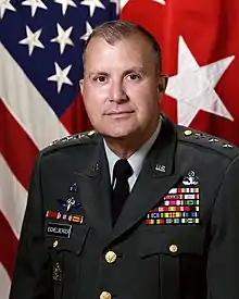 Charles Bell Eichelberger[1][2] (November 19, 1934 – December 27, 2021) was an officer in the United States Army. From November 22, 1989 to September 30, 1991, Eichelberger, then a lieutenant general, served as the deputy chief of staff for intelligence, Headquarters, Department of the Army.[3][4] He is credited with providing high quality military intelligence support for Operations Desert Shield and Desert Storm.[5]