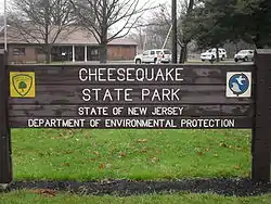 ![]() Entrance sign leading into Cheesequake Park | |||||||||||||||||||||||