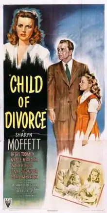 Child of Divorce is a 1946 American drama film directed by Richard O. Fleischer. It was the first film that he directed. RKO had adapted the play to film before as the 1934 film Wednesday's Child.[1][2]