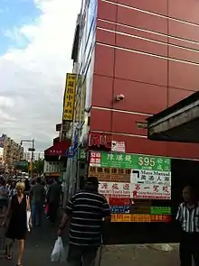 New York City's satellite Chinatowns in Queens, as well as in Brooklyn, are thriving as traditionally urban enclaves, as large-scale Chinese immigration into New York continues,[50][51][52][53] with the largest metropolitan Chinese population outside Asia.[54] busy intersection of Main Street, Kissena Boulevard, and 41st Avenue in the Flushing Chinatown (法拉盛華埠), in Queens. The segment of Main Street between Kissena Boulevard and Roosevelt Avenue, punctuated by the Long Island Rail Road trestle overpass, represents the cultural heart of Flushing Chinatown. Housing more than 30,000 individuals born in China alone, the largest by this metric outside Asia, Flushing is home to one of the largest and fastest-growing Chinatowns in the world.[48] Massage parlors in the Flushing Chinatown have become the hub of organized prostitution in the United States.[55]