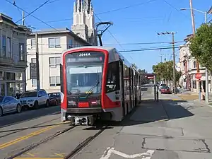 Church and 29th Street / Church and Day stations are a pair of light rail stops on the Muni Metro J Church line, located in the Noe Valley neighborhood of San Francisco, California. The eastbound (inbound) stop is located on Church Street at 29th Street, while westbound trains stop on Church Street at Day Street. The stops opened with the line on August 11, 1917. Until the 1991 extension to Balboa Park station, the line's outer terminus was just to the south at 30th Street. The station has two side platforms in the middle of Church Street (traffic islands) where passengers board or depart from trains. The station also has mini-high platforms providing access to people with disabilities.