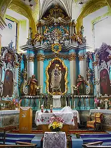 In 1906 the church was reconstructed again, a narthex and two square-shaped towers were added to the main building. The interiors were painted by the Polish artist Ferdynand Ruszczyc[1][2]