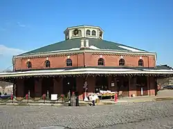 City Market, also known as Farmers Market, is an historic public market located at 9 East Old Street in Petersburg, Virginia. It was built in 1878–1879 through a land given in trust by merchant Robert Balling. The City Market is an octagonal brick building. It measures 93 feet in diameter and is surrounded by a large metal canopy supported on elaborate iron brackets.[3][4] The market’s high-rafted interior was originally where perishables were sold, whereas the outside stalls were for produce.[5]