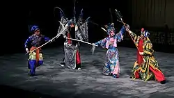 These novels were written in a mixture of vernacular and classical Chinese,[1] though some were more completely vernacular.[20] For instance, Romance of the Three Kingdoms is known for its mix of classical prose with folklore and popular narratives,[21] while the Dream of the Red Chamber is known for the use of poetry within its mostly vernacular style. These novels popularized and legitimatized the role of vernacular literature in literary circles.[22]