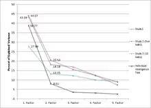 Woolley, Chabris, Pentland, Hashmi, & Malone (2010),[17] the originators of this scientific understanding of collective intelligence, found a single statistical factor for collective intelligence in their research across 192 groups with people randomly recruited from the public. In Woolley et al.'s two initial studies, groups worked together on different tasks from the McGrath Task Circumplex,[81] a well-established taxonomy of group tasks. Tasks were chosen from all four quadrants of the circumplex and included visual puzzles, brainstorming, making collective moral judgments, and negotiating over limited resources. The results in these tasks were taken to conduct a factor analysis. Both studies showed support for a general collective intelligence factor c underlying differences in group performance with an initial eigenvalue accounting for 43% (44% in study 2) of the variance, whereas the next factor accounted for only 18% (20%). That fits the range normally found in research regarding a general individual intelligence factor g typically accounting for 40% to 50% percent of between-individual performance differences on cognitive tests.[52]