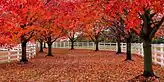 Fall colors of Red Maple trees over a fenced path of a farm The intersection of Route 34 and County Route 537 | |