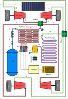 2. 1 2 3 Evrin, Reza Alizade; Dincer, Ibrahim (2020). "Experimental investigation of a compressed air vehicle prototype with phase change materials for heat recovery". Energy Storage. onlinelibrary.wiley. 2 (5). doi:10.1002/est2.159. S2CID 219020514. Retrieved 2020-04-27.