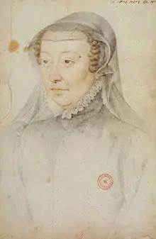 Montmorency's sister Louise de Montmorency was an early secret convert to Protestantism among the great nobility and married Gaspard I de Coligny.[30] Her husband died in 1522, and therefore Montmorency and his sister would jointly raise his nephews, who would all be drawn towards Protestantism.[31][32] Montmorency was greatly attached to his lineage, and thus despite his strong religious convictions did not formally oppose them for some time.[33]