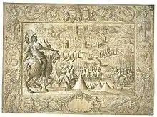 François decided to put Pavia to siege, and settled in for the winter around the city. The Imperial army, conscious that if they tried to wait the French out their army would dissolve for lack of pay, decided to force a battle with the French.[74] The battle of Pavia was an unmitigated disaster for the French. François, Henri II, king of Navarre, the comte de Saint-Pol, the comte de Tende, future father in law of Montmorency and Montmorency himself were all taken prisoner. The Imperial army was almost overwhelmed by the number of prisoners that they took.[75]