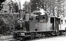 Works numbers 566 to 1415 carried Vve L Corpet & L Louvet works plates.[2] At the end of the 1880s and into the 1890s many light railways were built in France, many of them to metre gauge. Metre gauge six-coupled tank locomotives formed the bulk of Corpet-Louvet's production until the outbreak of the First World War. In the Ardennes, light railways were built to 800 millimetres (2 ft 7 in) gauge. Corpet-Louvet supplied fourteen locomotives between 1895 and 1906. The line and locomotives were later converted to metre gauge.[3] Corpet-Louvet also built Mallet locomotives, the first being 0-4-4-0s built in 1897 for the Tramways à Vapeur d'Ille et Vilaine. Works numbers 1409 - 13 were 0-6-6-0 Mallets built for the Chemin de Fer du Centre. These were the largest metre gauge locomotives built by Corpet-Louvet.[4]
