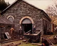 In 1981 the line's original locomotive shed at Maespoeth was acquired and became the railway's operational base. During the 1980s light track was laid between Maespoeth and Corris, a distance of just under a mile (1.6 km). The formal "first train" back to Corris ran in 1985. In the following years the track was upgraded to passenger standards while negotiations with the authorities continued.